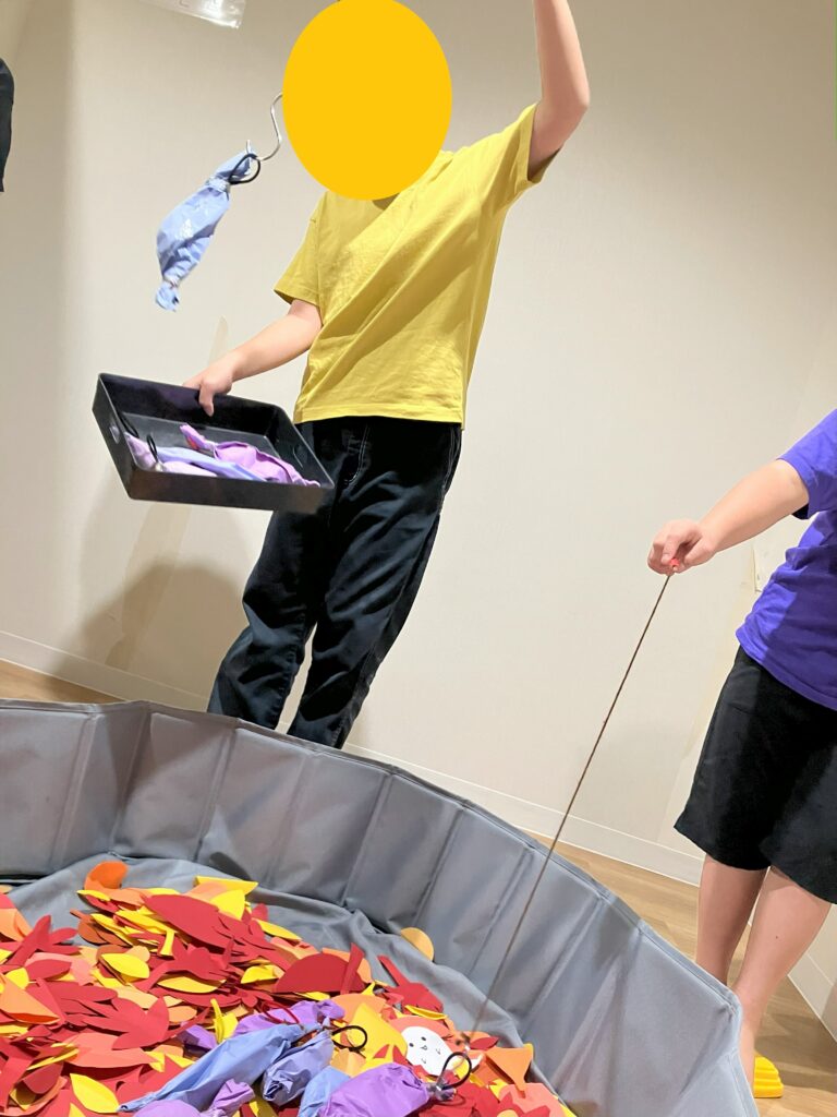 みんなで釣竿を持ち、