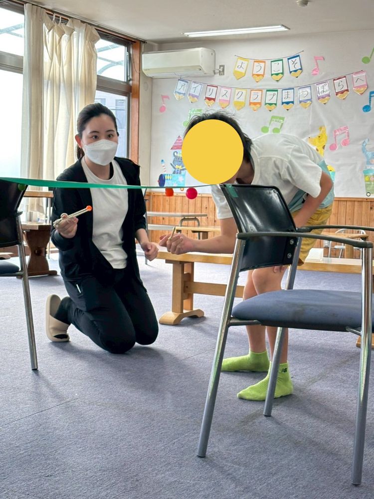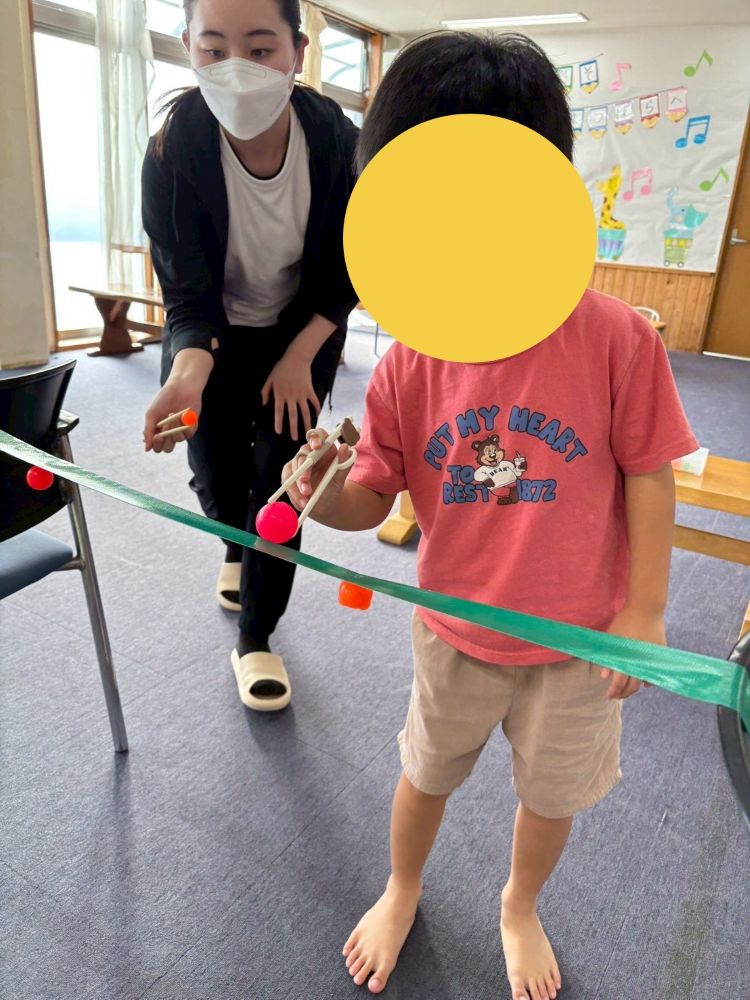 ボール運びは松原の事業所でもよく行う活動の一つです。今回はスーパーボールをお箸を使って運んでもらいました。