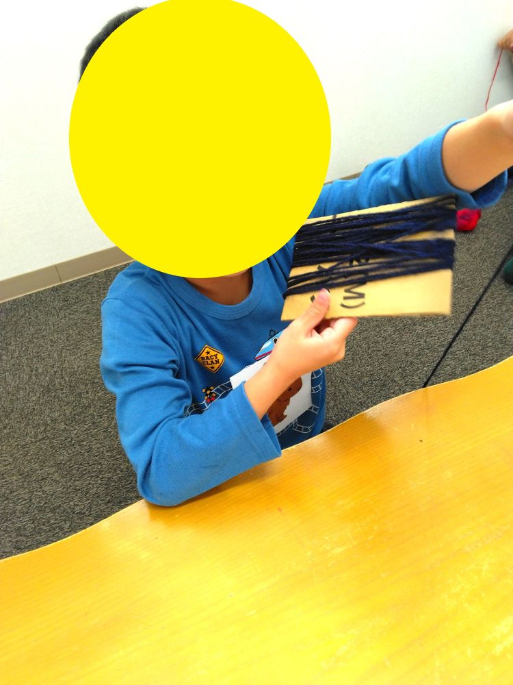 段ボールに毛糸を巻いて 髪の毛 を作り…
