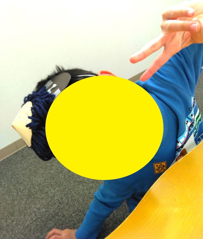 頭に付けているのは、手作り制作の 【鬼のつのカチューシャ】 ですよ♪