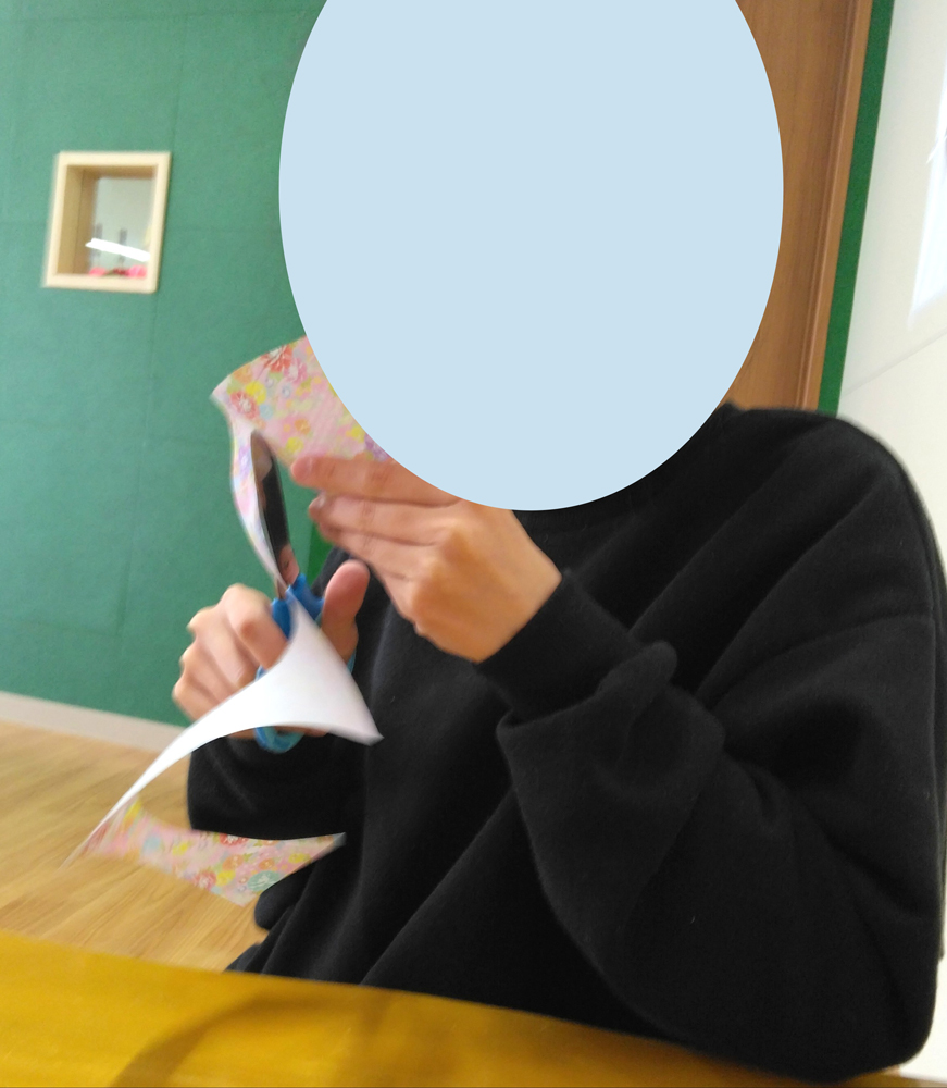 まずは折り紙を まるく切ります。
