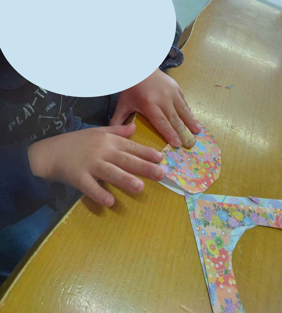 切っておいた おうぎ などにノリを付けて貼ったり…
